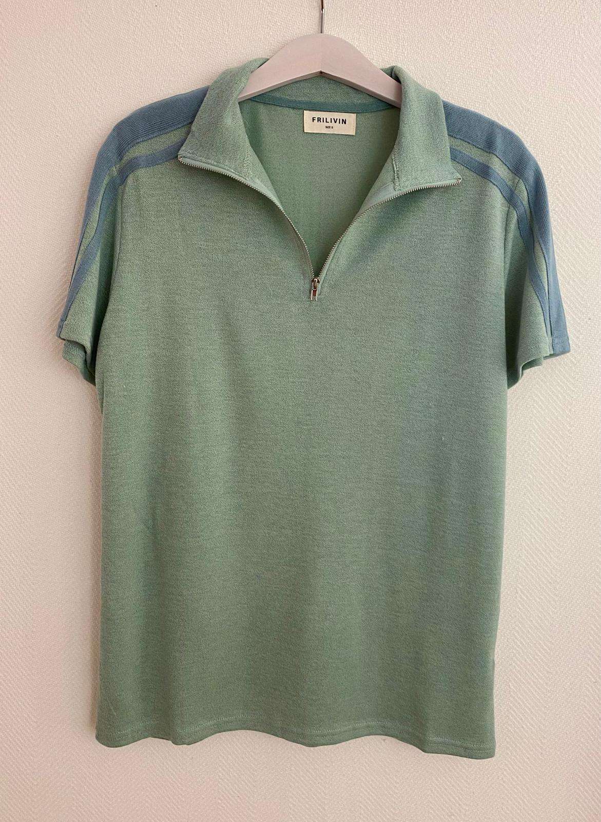 Polo de punto fino con cremallera, de manga corta y detalle en los hombros. Tacto suave agradable. Disponible en dos colores.